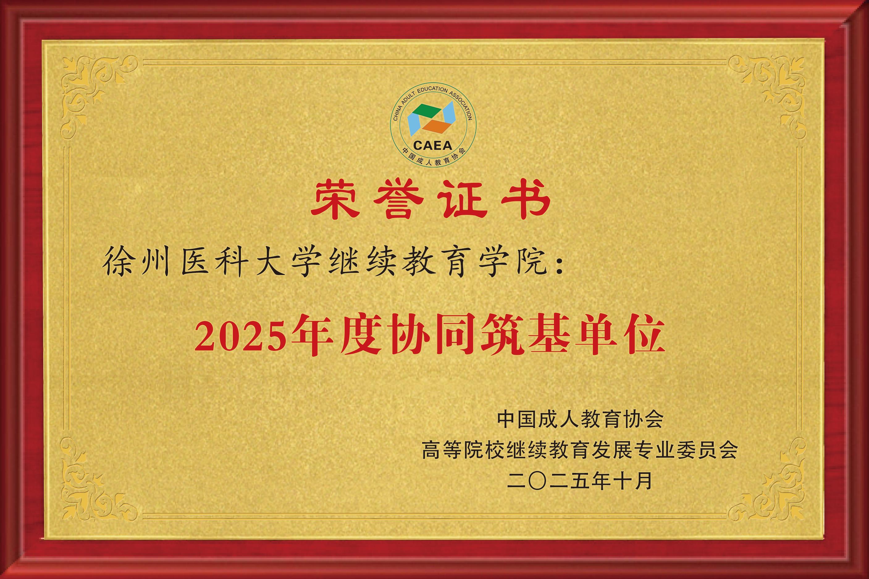 11月20日,中国成人教育协会高等院校继续教育发展专业委员会第一届理事会全体会议暨教育强国视域下高等继续教育品牌赋能与数智化拓新研讨会顺利召开。经专委会理事长办公会严格评审,继续教育学院凭借在服务国家战略、推动终身学习体系建设方面的突出表现,荣获“2025年度协同筑基单位”称号,全国仅十家单位获此殊荣。