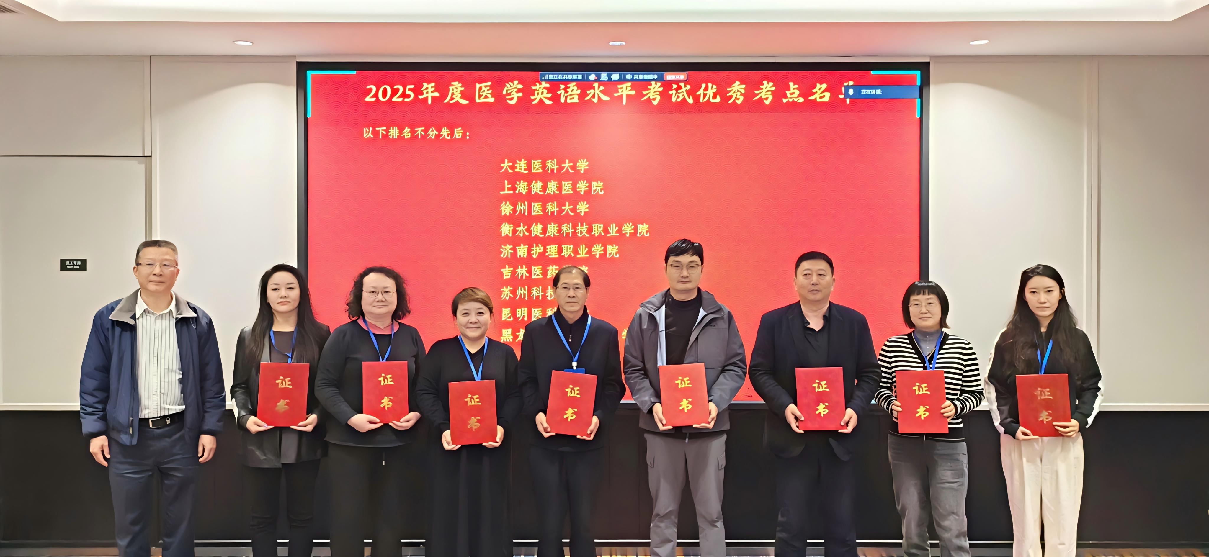 学院荣获2025年度全国医学英语优秀考点称号