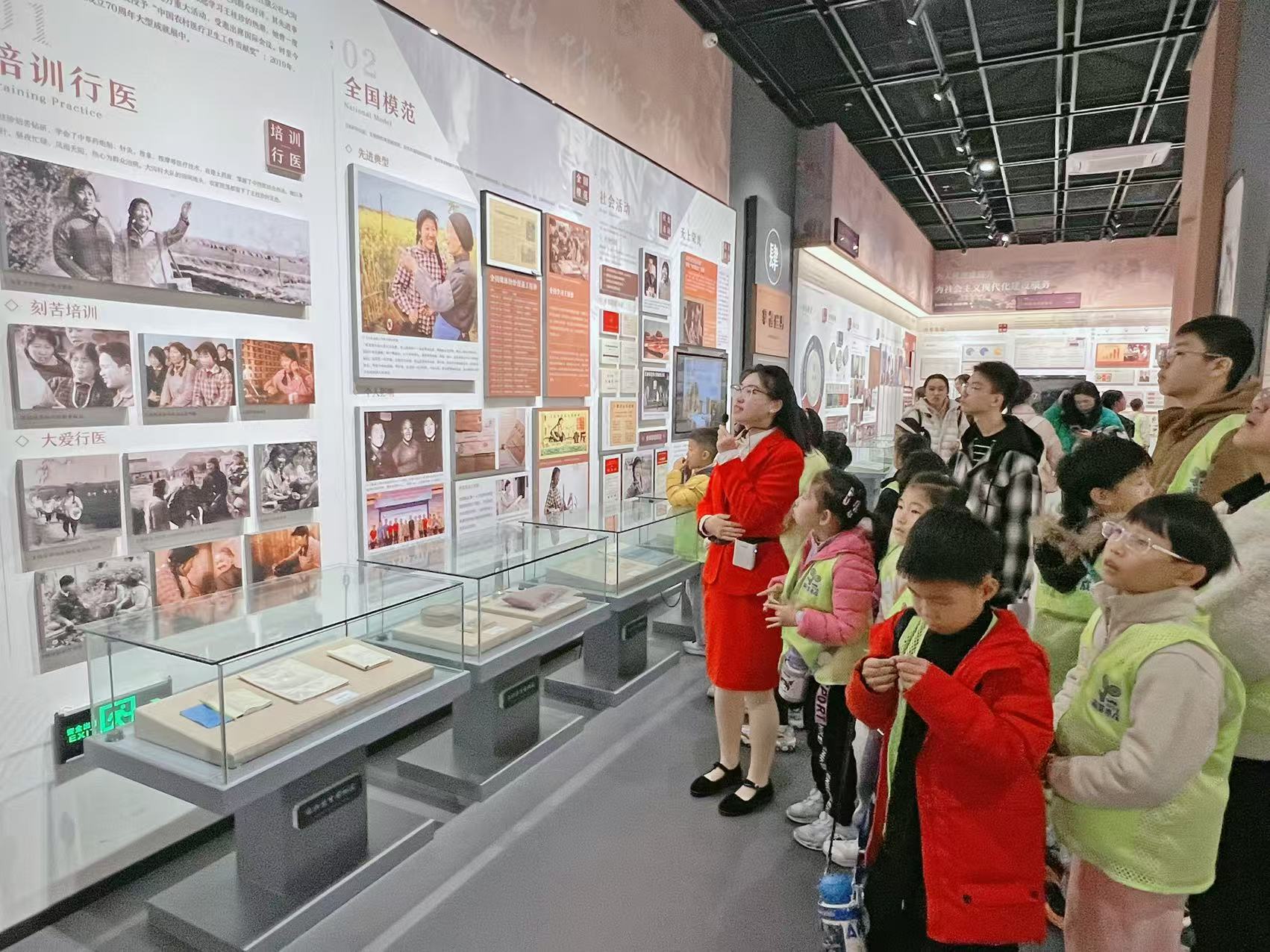 研学活动以“行走的医学课堂”为核心,首站走进赤脚医生博物馆。学员们循着我国基层医疗卫生事业的发展脉络,通过珍贵史料、实物展品,真切感受老一辈医务工作者扎根基层、无私奉献的医者情怀,深刻理解“健康中国”战略的历史根基。随后,生命科学馆内的专业讲解为学员们揭开了人体结构与生命演化的奥秘,直观的标本展示与生动的科学阐释,进一步筑牢了大家对生命的敬畏之心。校训石、大体老师纪念园、药学植物园等校园地标的游览打卡,让学员们在自然景致与人文底蕴的交融中,感受徐医“以德载医、博学创新”的精神内核。